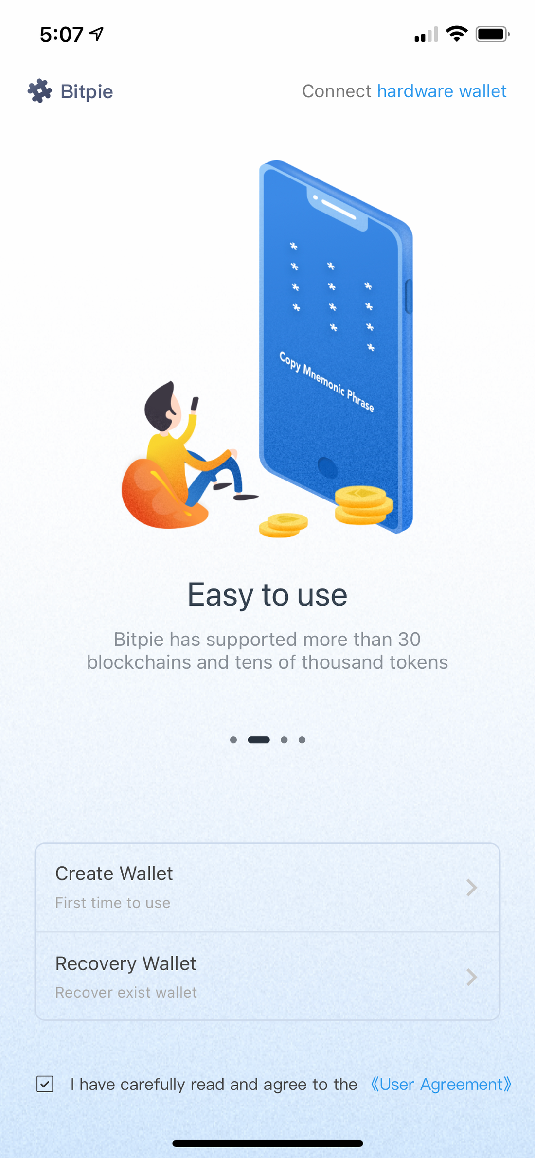 Open Bitpie, and click Create Wallet.