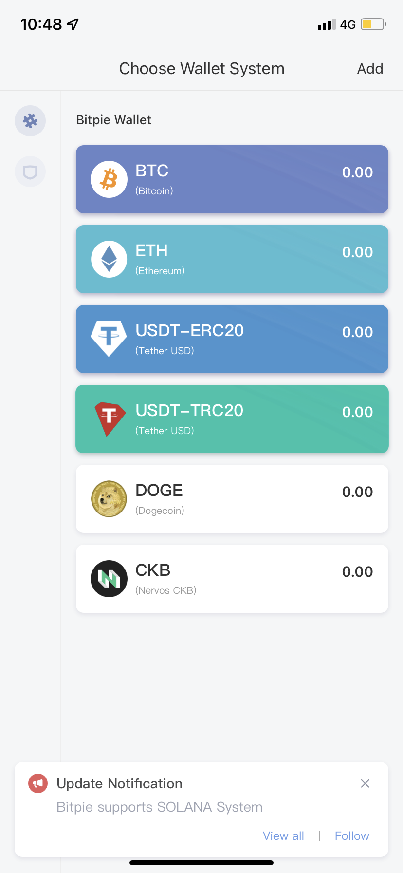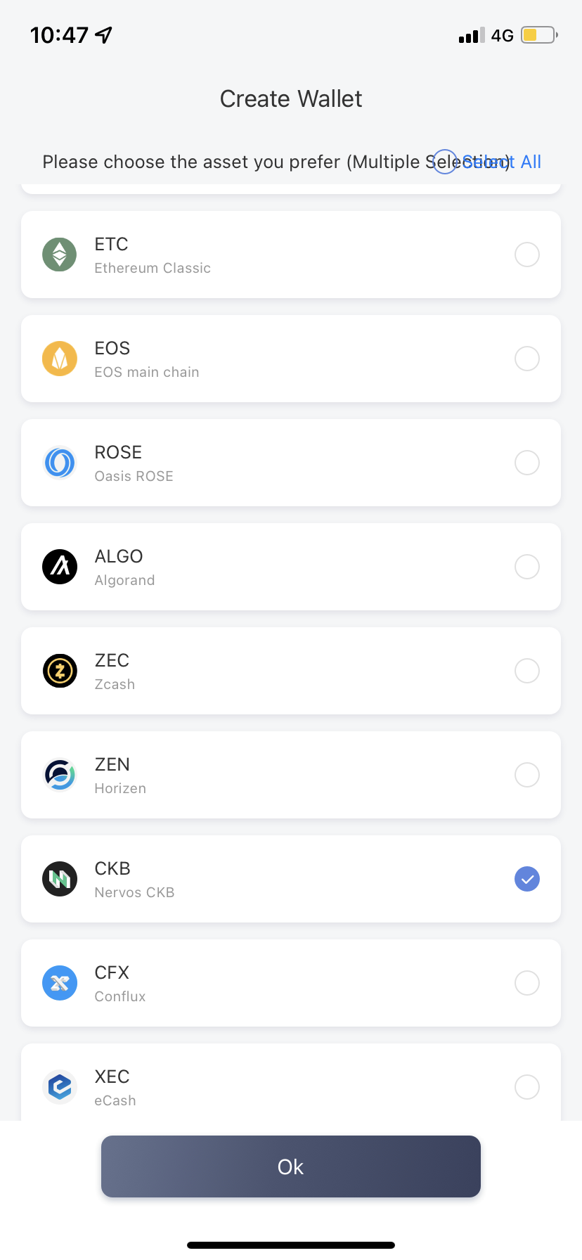 Choose CKB on the Choose Wallet System page.