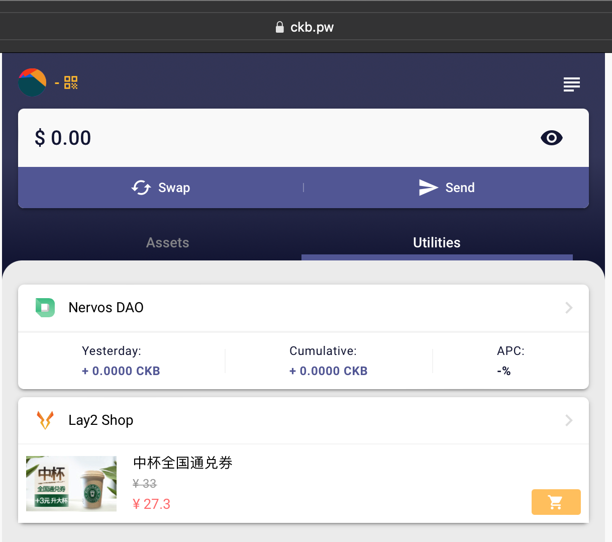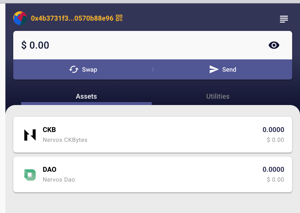 Portal Wallet is a web wallet that runs directly in a browser. It is a dApp wallet that allows users to receive and send Nervos CKBs with existing Ethereum addresses and wallets.