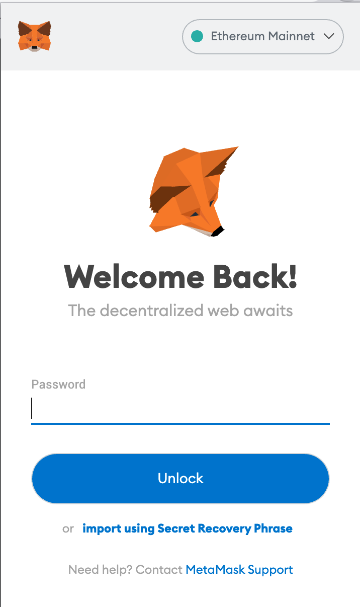 1. Open ckb.pw in a browser that has installed the MetaMask wallet extension. Type the password to log in to the MetaMask.