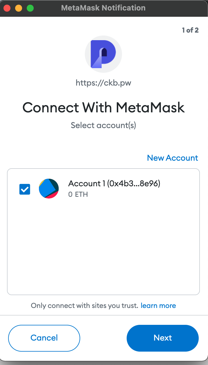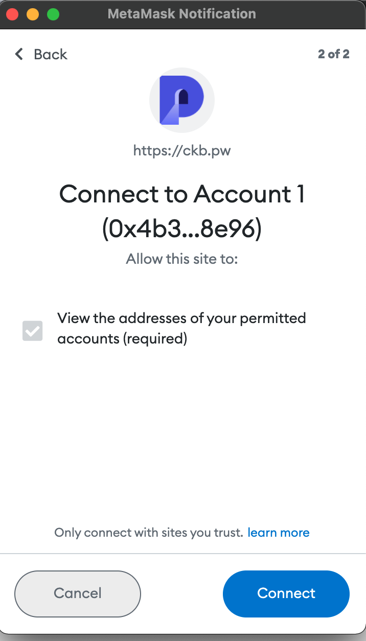 2. A MetaMask connection request will automatically pop up. Choose the address desired for login.