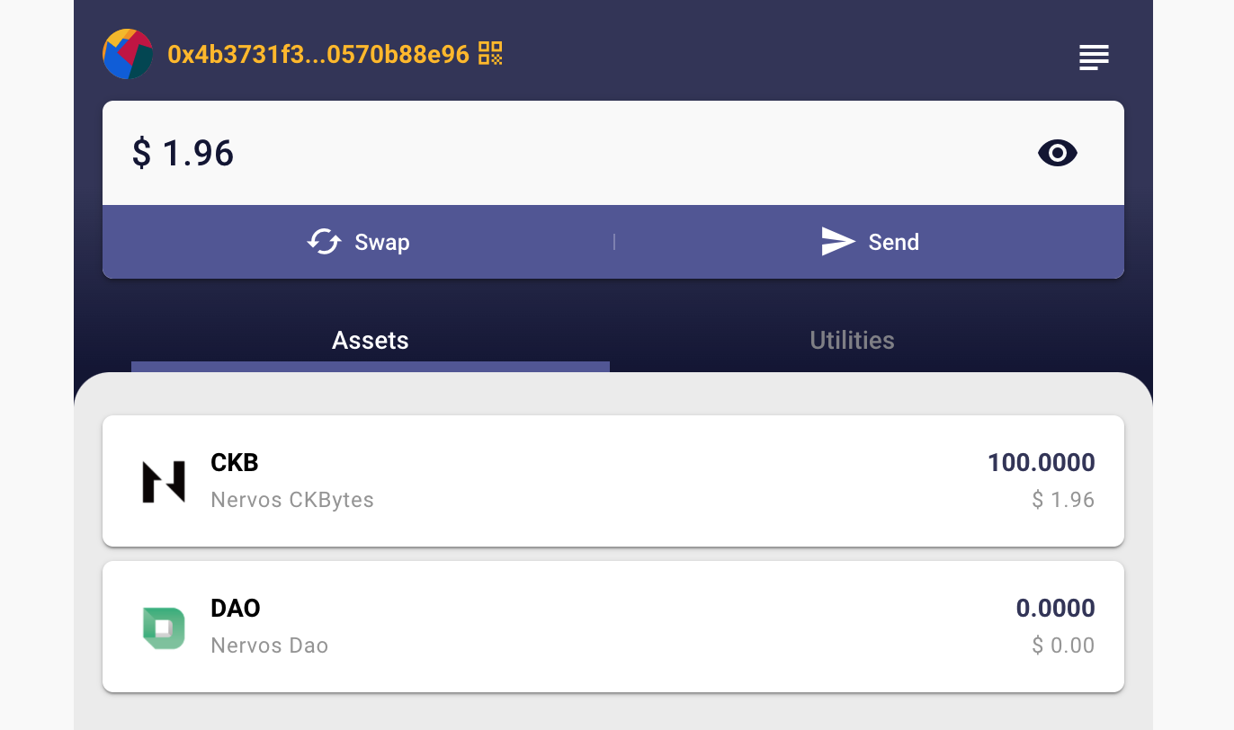 The Portal wallet is a superb alternative to Neuron Wallet by allowing users to use on the mobile phone. In addition, it does not require manual sync with a Mainnet node and supports a variety of wallets. Using Portal Wallet is quite simple. The user needs to possess at least one cryptocurrency account and at least one cryptocurrency wallet in use. On the Portal Wallet, users can check the Ethereum address and CKB address, view the balance, and lock the CKB in the Nervos DAO.