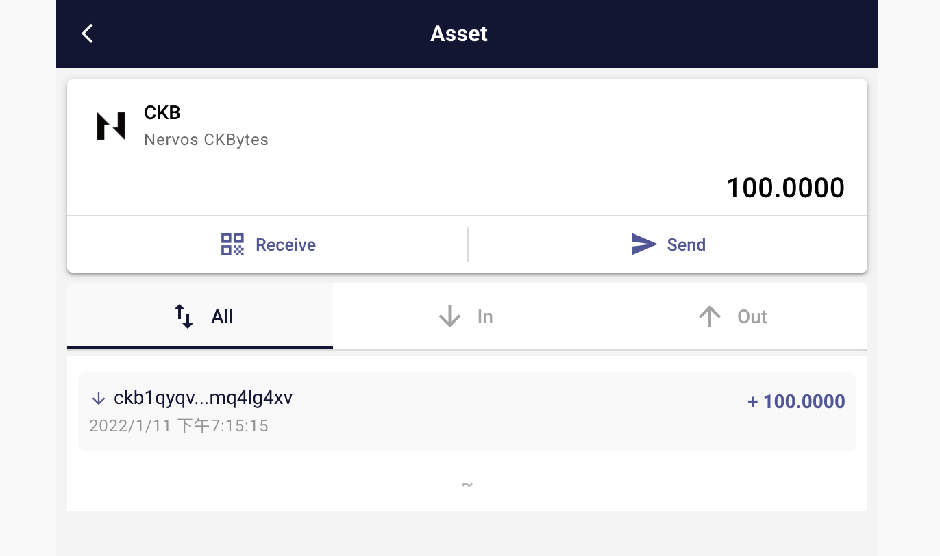 Note: The wallet must have a minimum of 61 CKBs for a transfer operation.