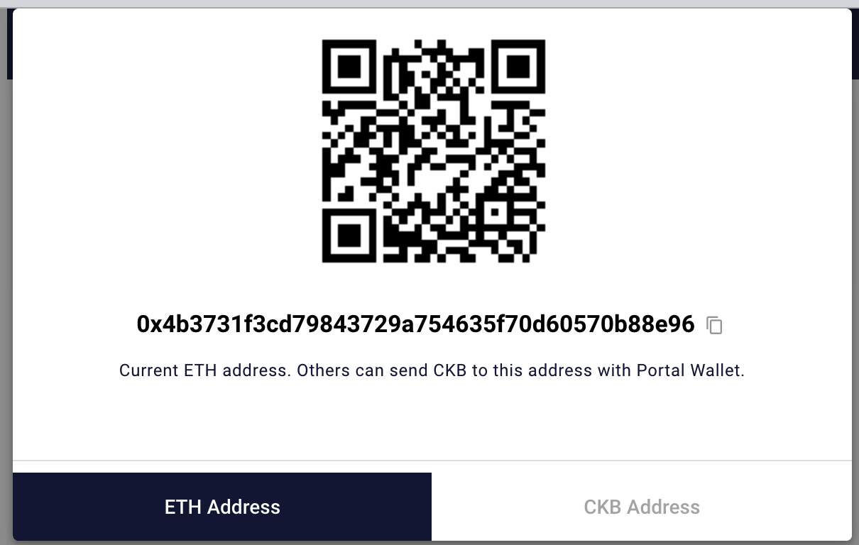 • Ethereum address is the current Ethereum address bundled at login that can be used to send and receive CKB assets directly in Portal Wallet.