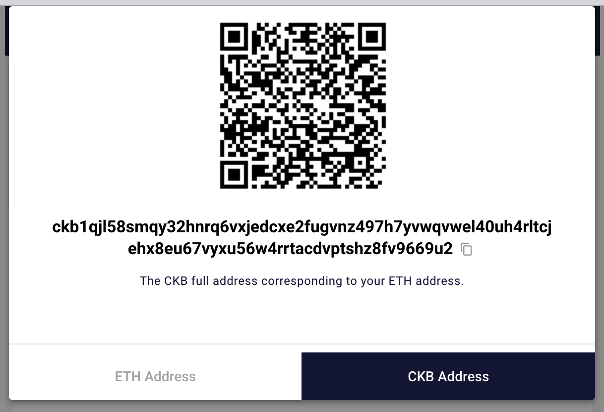 • CKB address: since most exchanges and CKB wallets do not yet support the transfer of CKB full address, Portal Wallet can assist with transferring assets by transferring CKB to a ckb address for the first time using.