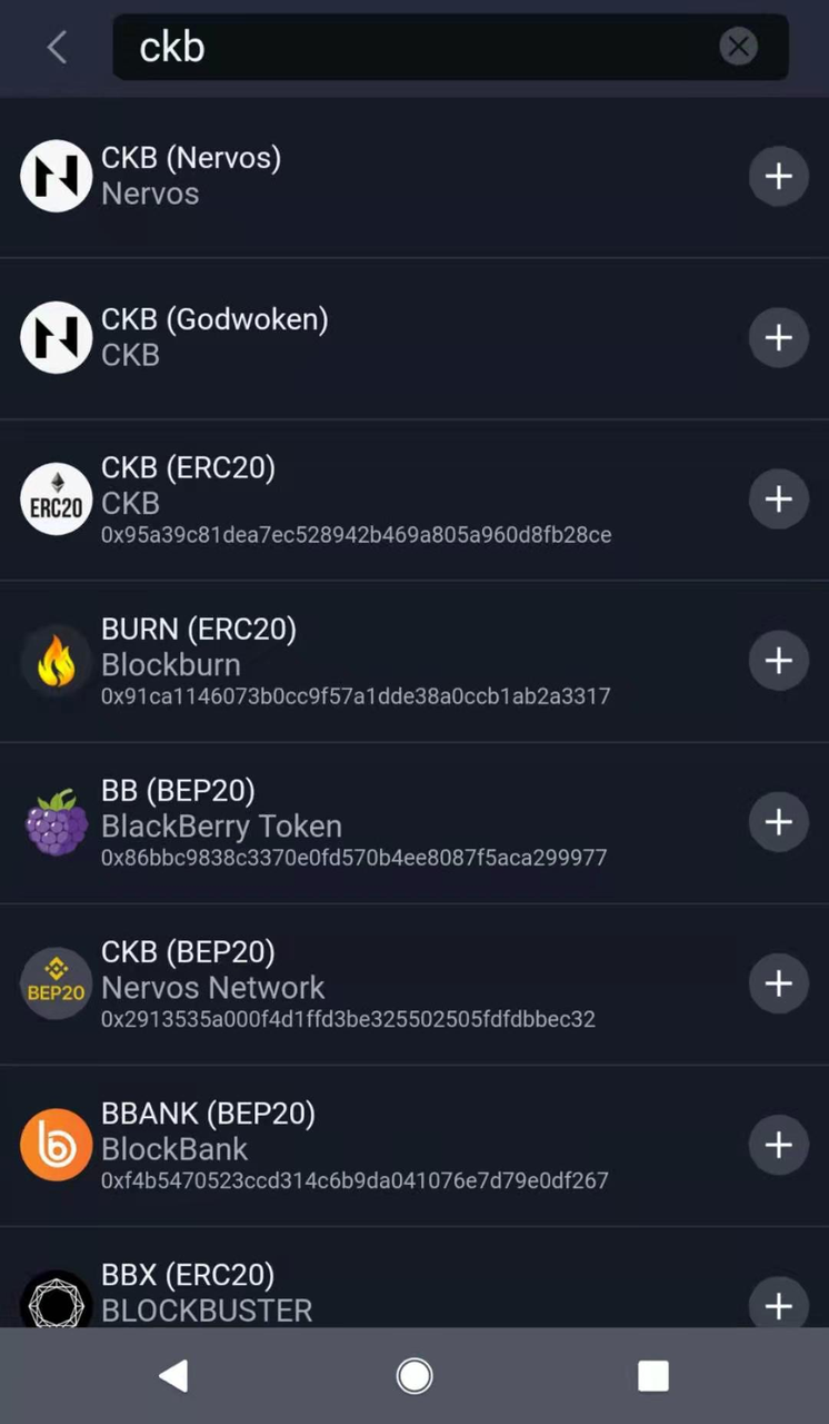 Note: The search results show such tokens as CKB (Godwoken), CKB(ERC20) and CKB(BEP20), all of which serve different purposes here. Do NOT add them to the asset list.