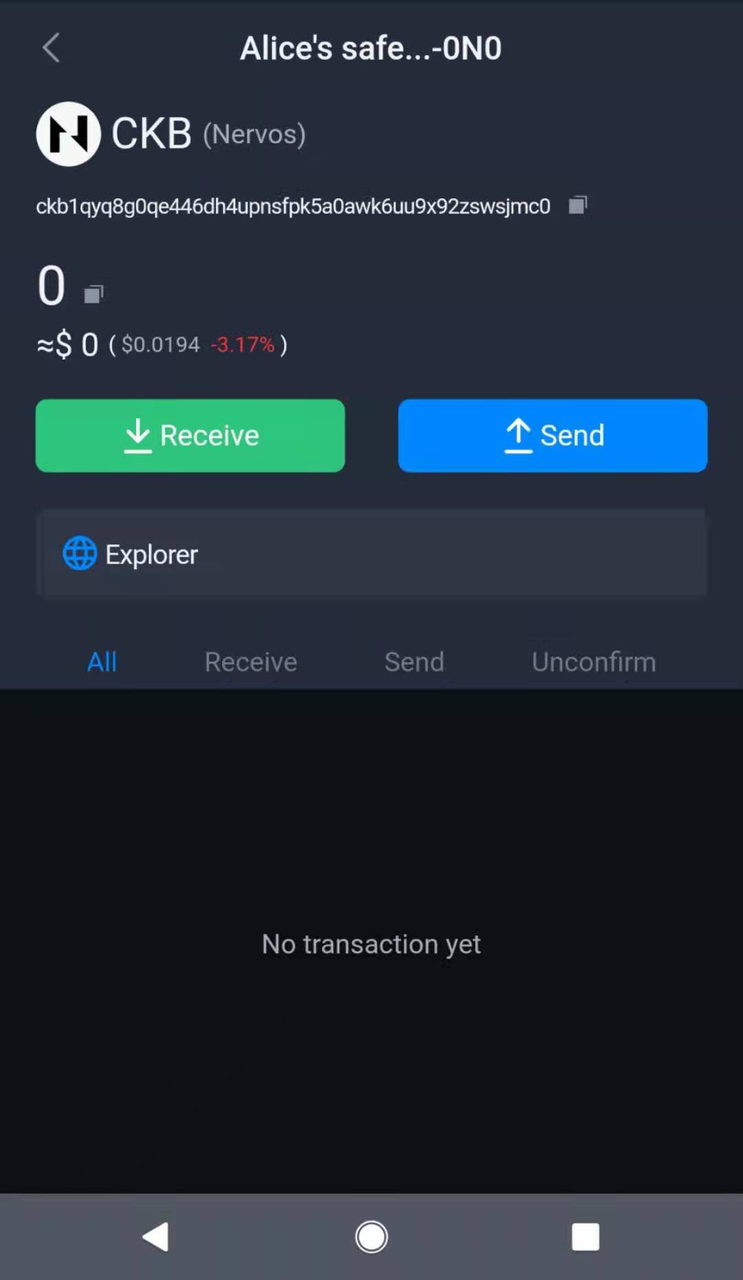 Now CKB (Nervos) is successfully added. It's time to create the first transaction.