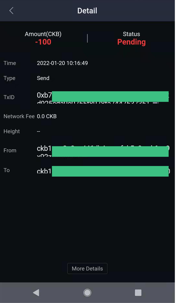 Click on More Details to see the on-chain confirmation information of the transaction.