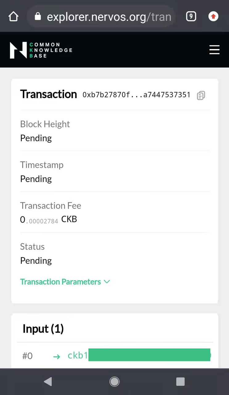 You will be redirected to Nervos Explorer where the transaction details are displayed.
